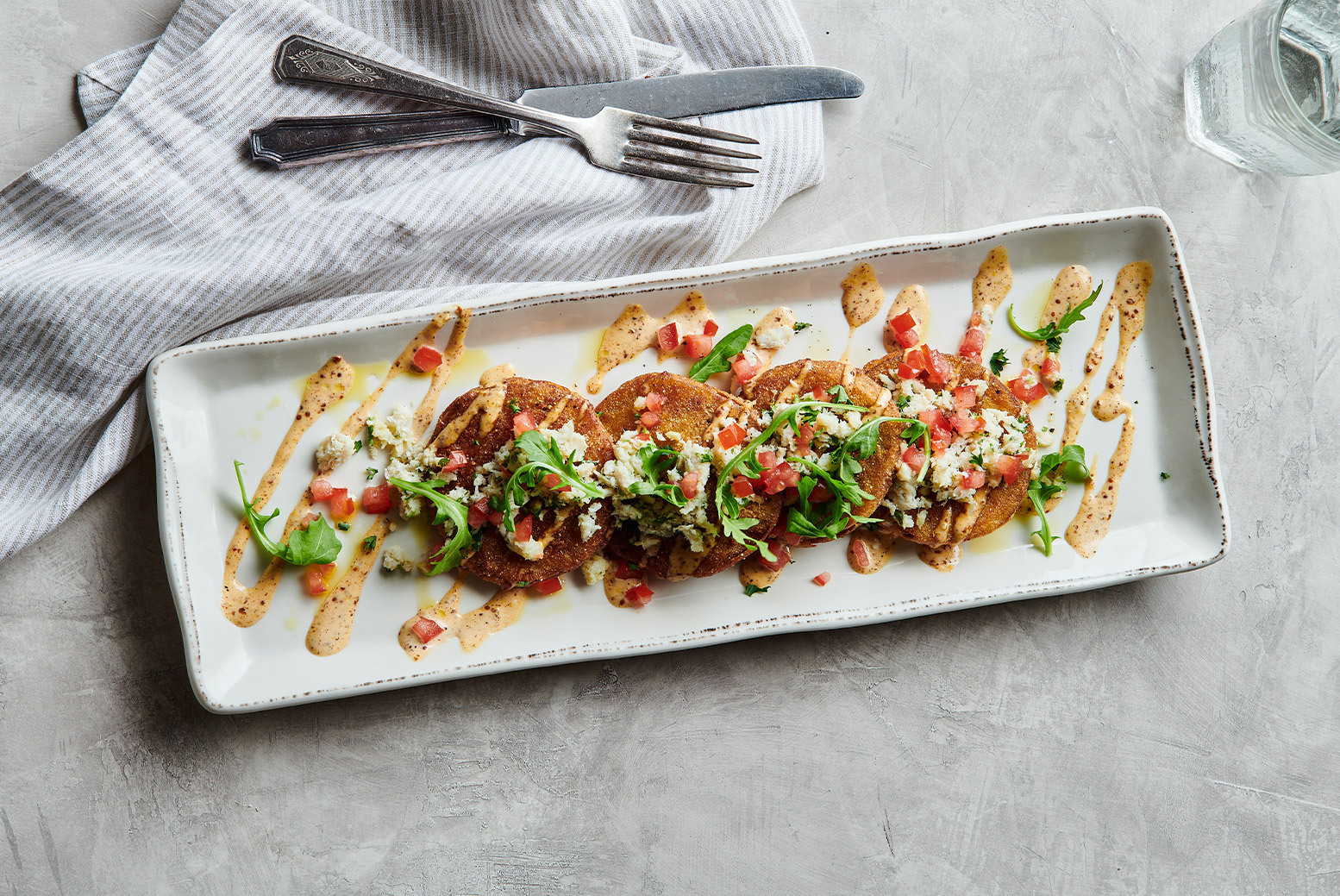 Fried Green Tomatoes topped with Alabama Blue Crab, now being served at Acre.