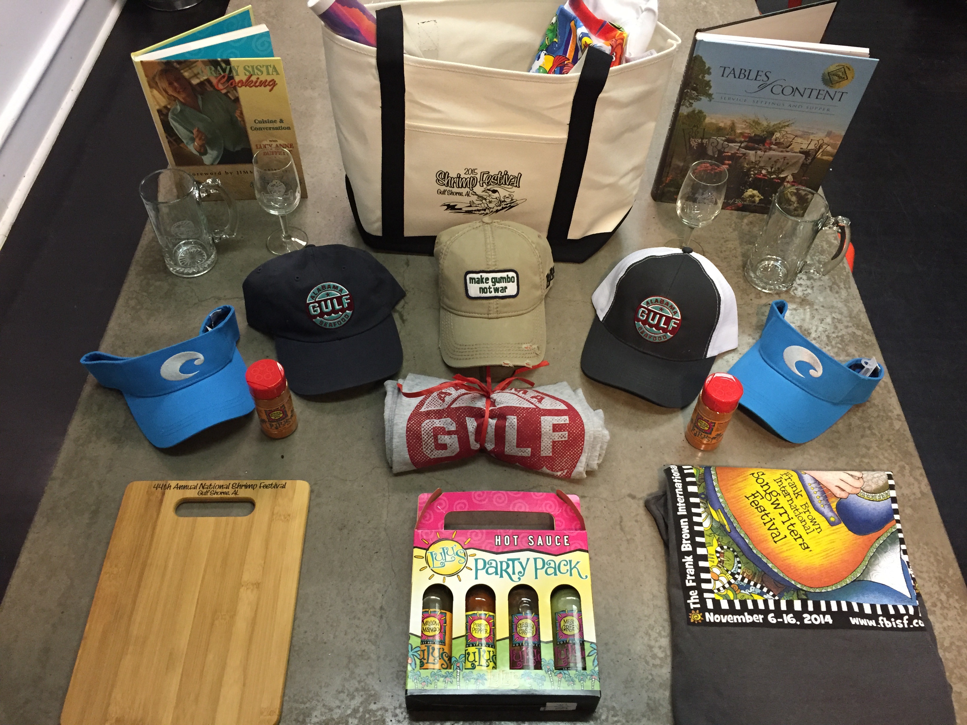 December 7 – To kick things off, we’ve got two bags from the National Shrimp Festival filled with shirts, posters, cooking gear, and more. (Shrimp are not included, sadly.)