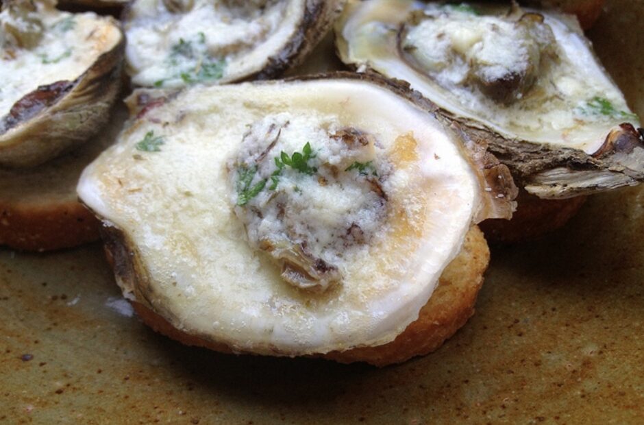 _My wife and I host her entire family for lunch on Christmas. This year I’m serving something new. My friend Bob Baumhower has started serving _[_a dish called Oysters Ala’ Bama_](http://eatalabamaseafood.com/articles/new-ala-bama-dishes-hit-menu-compleat-angler-bimini-bobs/)™_. It’s a layered dish cooked in a cast-iron cornbread muffin pan. The bottom layer is home-cooked collard greens topped with thick-cut bacon with an _[_oyster_](http://eatalabamaseafood.com/f... on top of the bacon and finished off with a four-cheese mix. The dish is broiled for a few minutes to melt the cheese and slightly cook the oyster. There are very few dishes more Southern than one with collards, bacon, and oysters! I’m looking forward to sharing this dish with the family this year._
