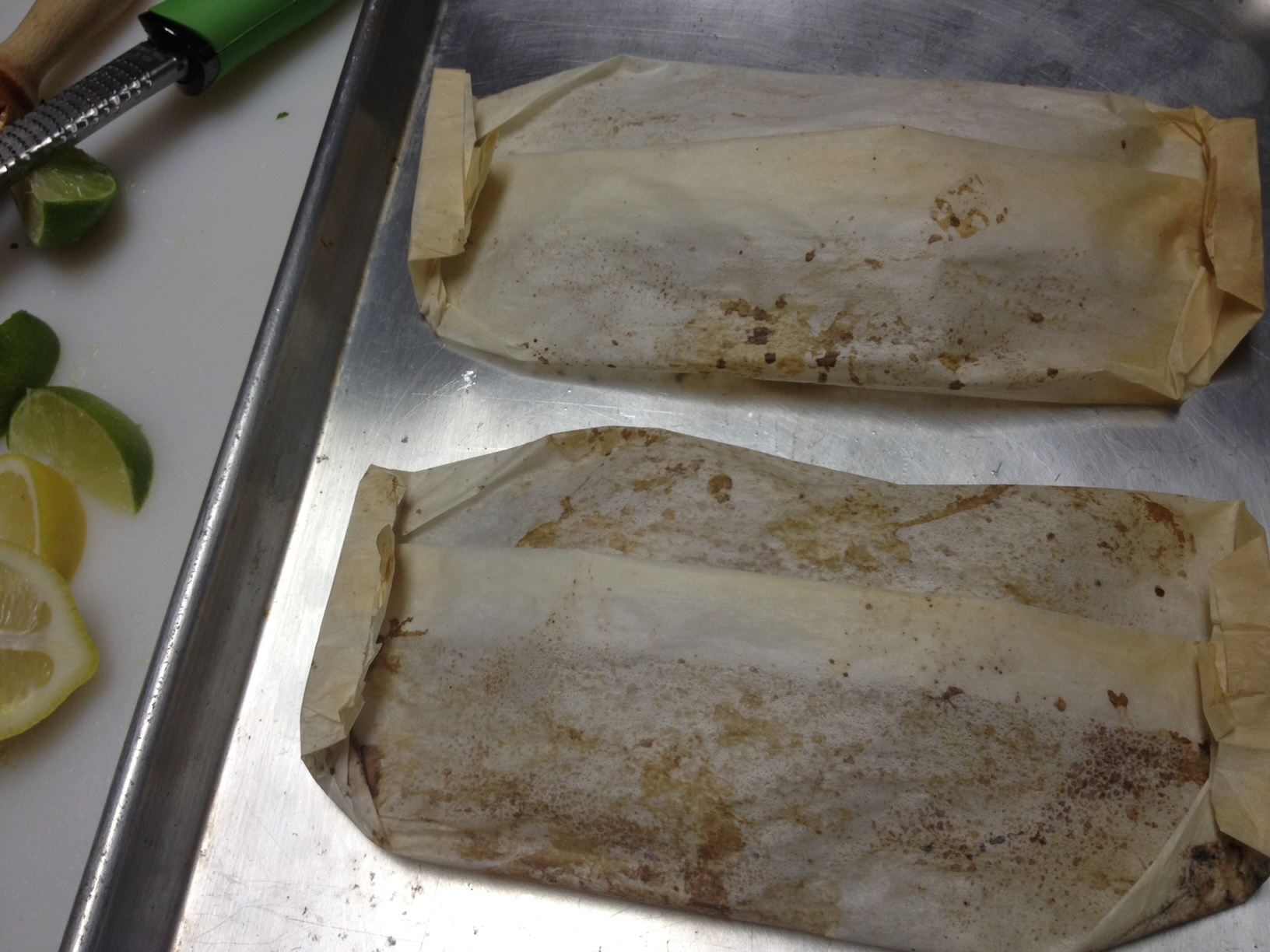 Special equipment: 6 parchment paper squares, large enough to fold into a package around the filets so no steam escapes.