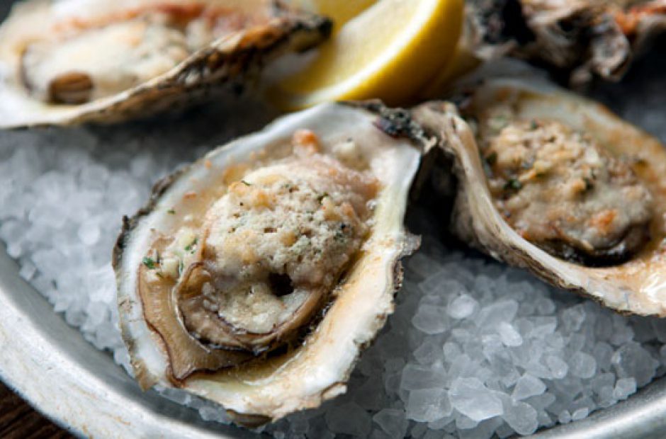 Chef Wesley True’s Cold-Smoked Sautéed Oysters with Bibb Lettuce, Brown Butter, Capers and Onions Seafood: Oysters