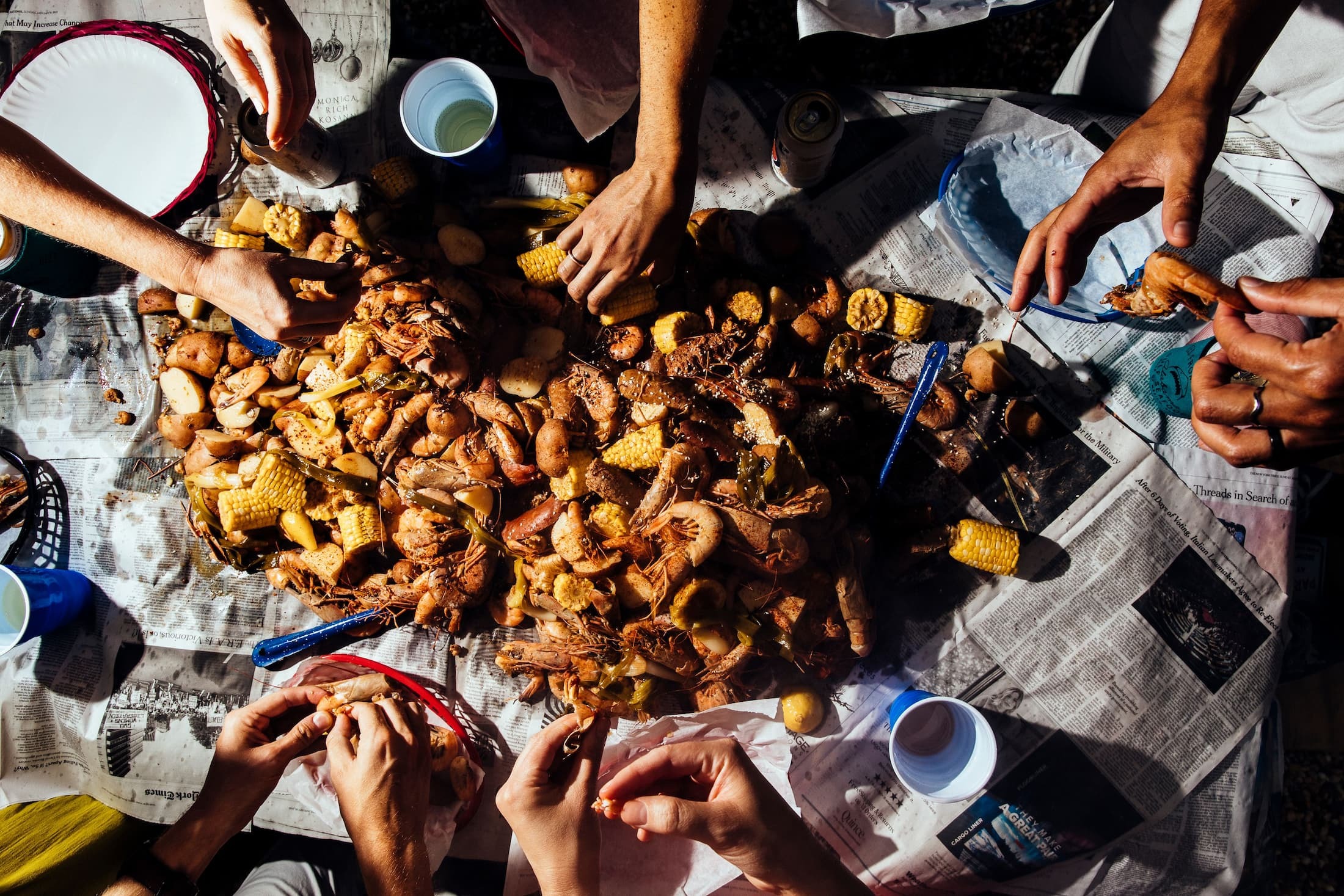 The best shrimp boils use shell-on shrimp for extra flavor, but you can use peeled shrimp if that feels too fussy for your crowd.